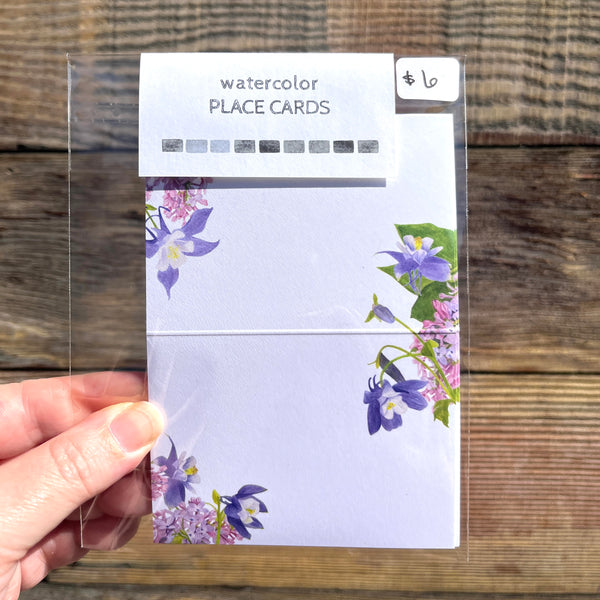 Watercolor Place Cards - Purple Lilac & Columbine Flowers
